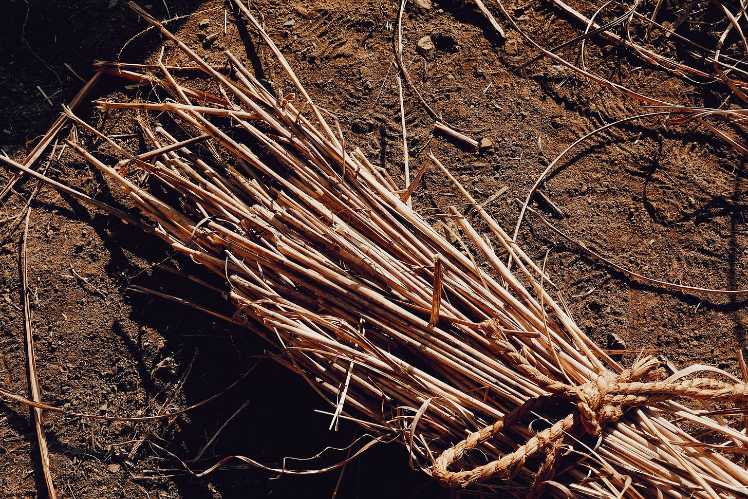 1月末、筆者は季節はずれの陽気に包まれ、草刈り機の「キィーンキィーン」と言う音を聞いていました。目の前にあるのは香ばしい色をした茅。地域で守られている茅葺き住宅の屋根の素材である茅を、乾燥させ貯蔵しておくのです。