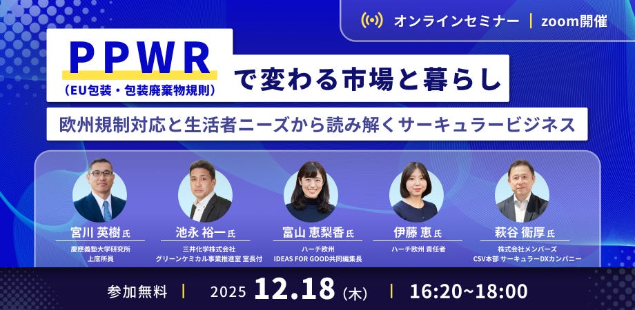 【12/18開催】PPWR(EU包装・包装廃棄物規則)で変わる市場と暮らし 〜欧州規制対応と生活者ニーズから読み解くサーキュラービジネス〜