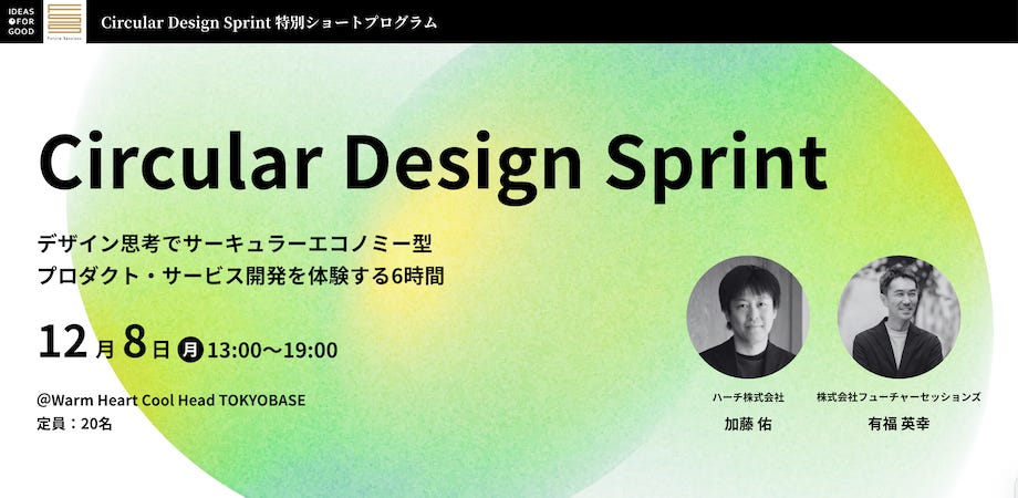 【12/8開催】サーキュラーデザイン思考を身につける「Circular Design Sprint」1day ワークショップ