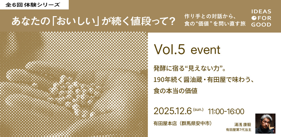 しかし、そんな今だからこそ、私たちは食の「本当の価値」を改めて問い直してみる必要があるのではないでしょうか。今回IDEAS FOR GOODは、身近な食材の生産者や流通の現場を訪ね、食の価値と主体的に向き合うための体験シリーズイベントを企画しました。