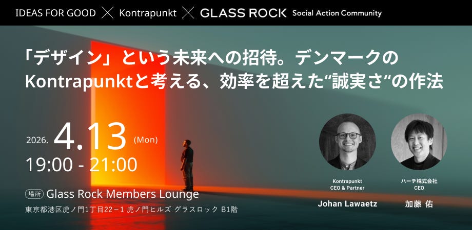 登壇者: Johan Lawaetz氏(Kontrapunkt CEO)、加藤 佑(IDEAS FOR GOOD 創刊者)