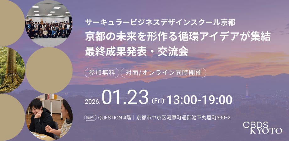 【1/23開催@京都/オンライン】京都の未来を形作る循環アイデアが集結。サーキュラービジネスデザインスクール京都 最終成果発表・交流会