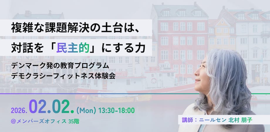 【2/2@東京】デンマーク発の教育プログラム・デモクラシーフィットネス体験会。複雑な課題解決の土台は、対話を「民主的」にする力